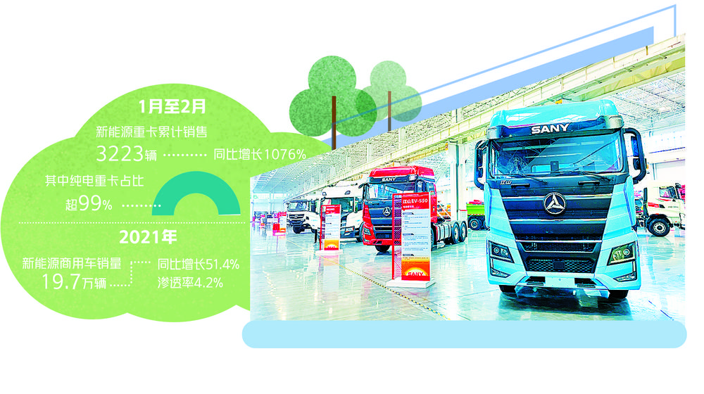 今年以来,油价连续上调,带动新能源商用车特别是新能源重卡销量快速增长。今年1月至2月,新能源重卡累计销售3223辆,同比增长1076%,其中纯电重卡占比超99%。据了解,新能源重卡目前供不应求,一些企业的订单已经排到了5月份。
