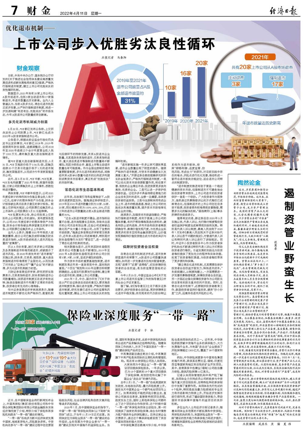 近日,在中国银保监会例行新闻发布会上,中国再保险(集团)股份有限公司和中华联合保险集团股份有限公司就金融服务实体经济情况做了介绍,特别介绍了保险和再保险机构服务“一带一路”建设的情况。