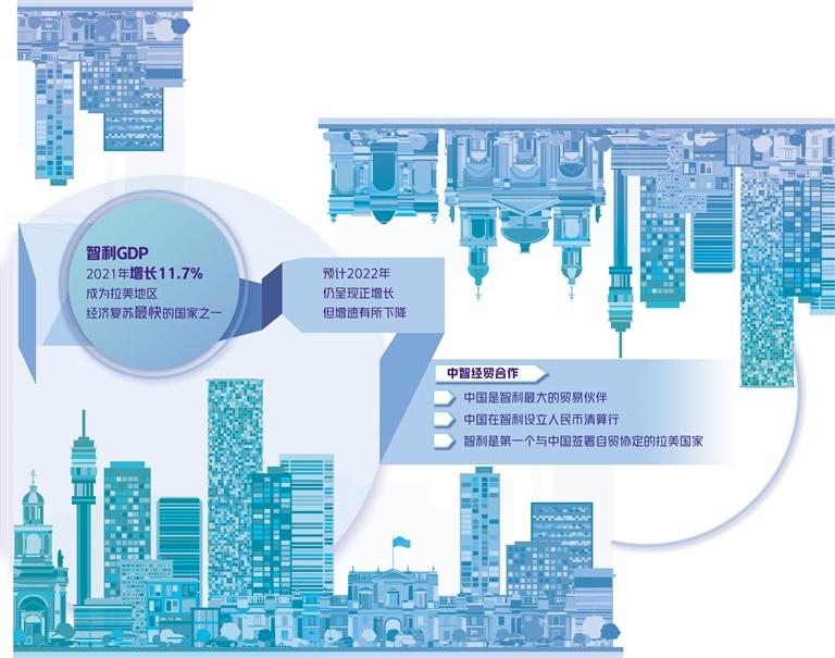 在经历了近40年来最严重的衰退后,2021年智利经济基本面触底回暖,GDP增长高达11.7%,成为拉美地区经济复苏最快的国家之一。市场普遍预计,智利今年经济增速将放缓,但增长趋势不改。