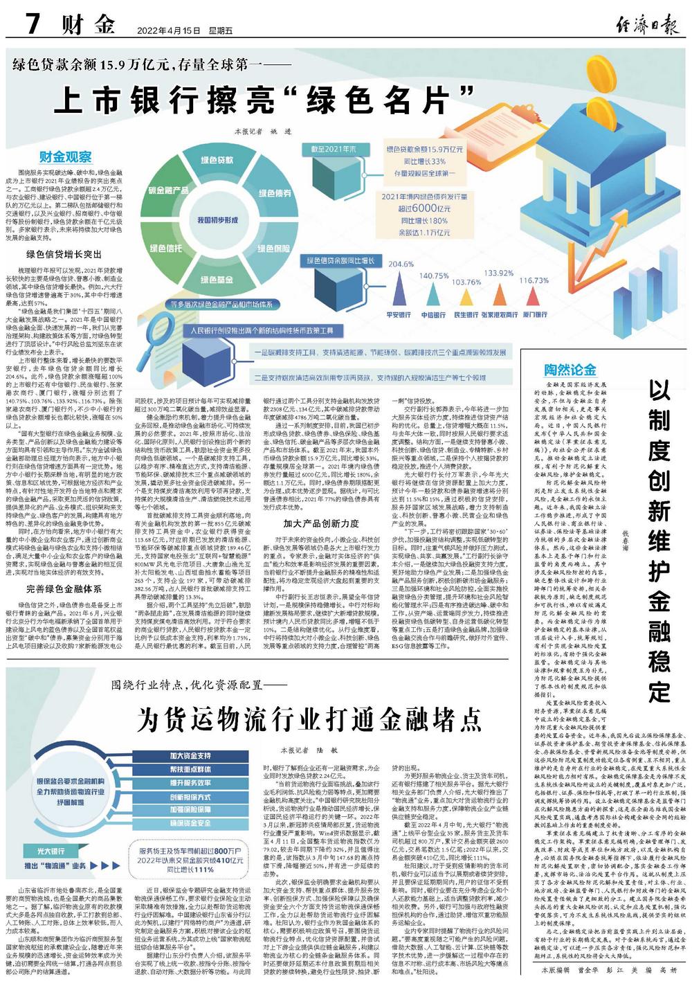 “绿色金融是我们集团‘十四五’期间八大金融发展战略之一。2021年是中国银行绿色金融全面、快速发展的一年,我们从完善治理架构、构建政策体系等方面,对绿色转型进行了顶层设计。”中行风险总监刘坚东在该行业绩发布会上表示。