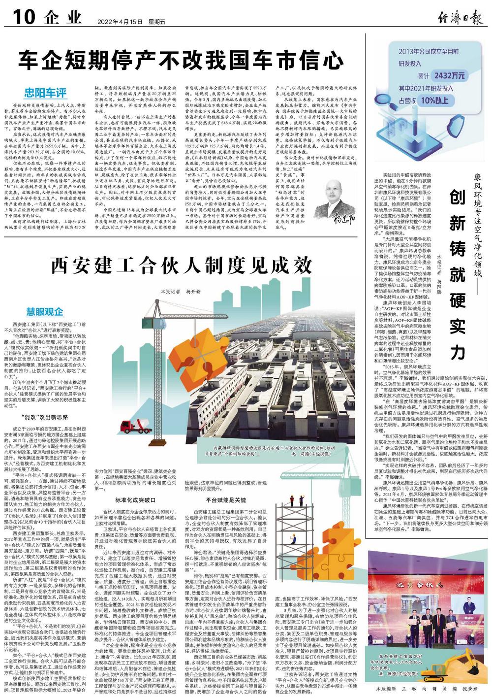 江传生过去半个月飞了7个城市推动项目。他告诉记者,“西安建工推行的‘平台+合伙人’经营模式提供了广阔的发展平台和坚实的后盾支撑,调动了大家的积极性和主动性”。