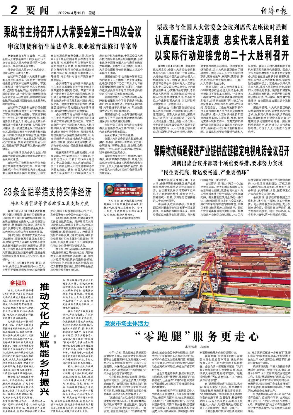 新华社北京4月18日电 中共中央政治局常委、全国人大常委会委员长栗战书18日下午同列席十三届全国人大常委会第三十四次会议的全国人大代表座谈交流。他强调,要深入学习贯彻习近平总书记在中央人大工作会议和十三届全国人大五次会议上的重要讲话精神,认真履行法定职责,忠实代表人民利益,充分发挥在践行全过程人民民主中的重要作用,在各自岗位上作出新的更大成绩,以实际行动迎接党的二十大胜利召开。