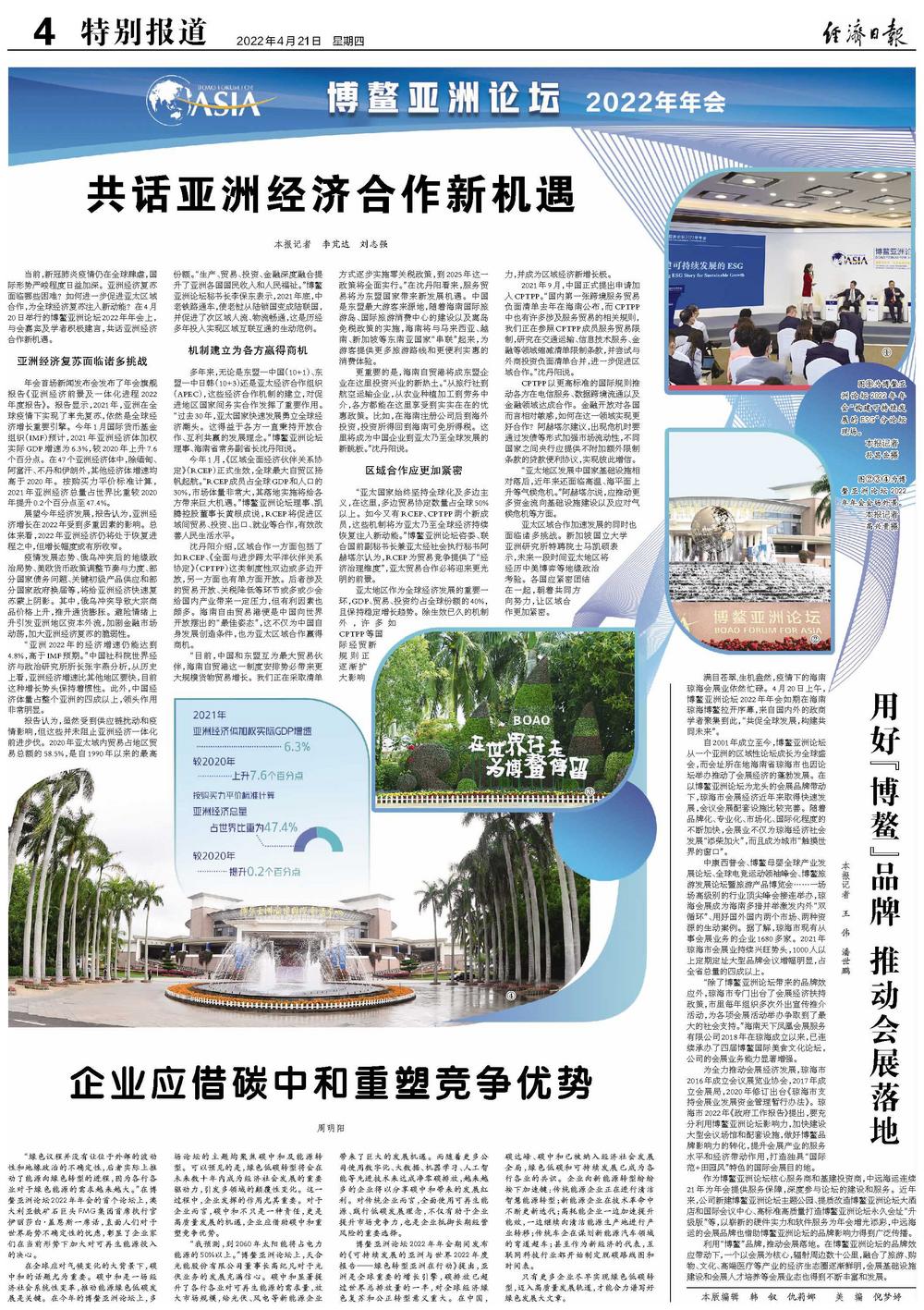 作为博鳌亚洲论坛核心服务商和基建投资商,中远海运连续21年为年会提供服务保障,深度参与论坛的建设和服务。近年来,公司新建博鳌亚洲论坛主题公园、提质改造博鳌亚洲论坛大酒店和国际会议中心、高标准高质量打造博鳌亚洲论坛永久会址“升级版”等,以崭新的硬件实力和软件服务为年会增光添彩,中远海运的会展品牌也借助博鳌亚洲论坛的品牌影响力得到广泛传播。