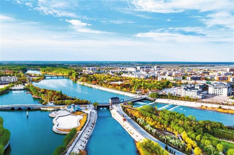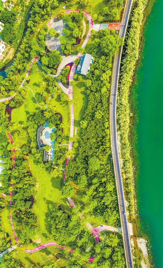③ 航拍的浙江省仙居县南峰街道河埠湿地公园。近年来,该县不断加大城市森林公园及河道生态保护力度,形成“城在绿中、园在城中、城绿相融”的公园城市体系。