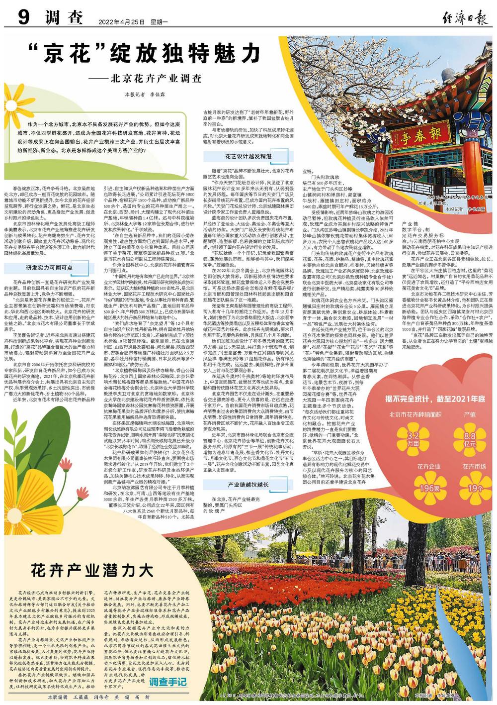 春色绽放正浓,花卉争奇斗艳。北京虽然地处北方,却已成为一座百花绽放的花园城市。随着城市功能不断更新提升,如今北京的花卉经济呈现跨界、跨行业发展之势。鲜花,是北京生态文明建设的灵动角色,更是推动产业发展、促进乡村振兴的绿色动力。