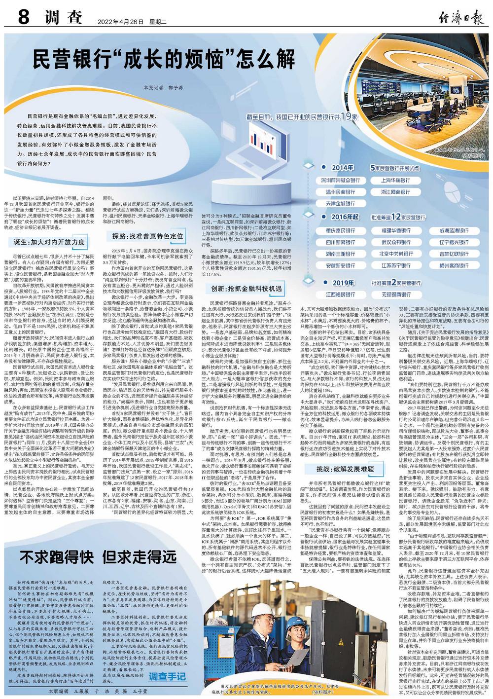 随后,《关于促进民营银行发展的指导意见》《关于民营银行监管的指导意见》相继出台,民营银行逐渐走上了依法合规经营、科学稳健发展之路。