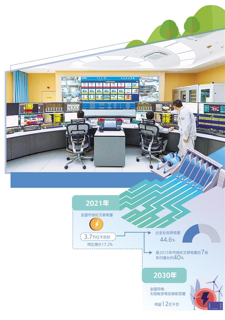 经过7年发展,我国电力市场多元竞争主体格局初步形成,市场化交易电量比重大幅提升,市场在资源优化配置中作用明显增强。2021年,全国市场化交易电量3.7万亿千瓦时,同比增长17.2%,占全社会用电量的44.6%,是2015年市场化交易电量的近7倍,年均增长约40%。