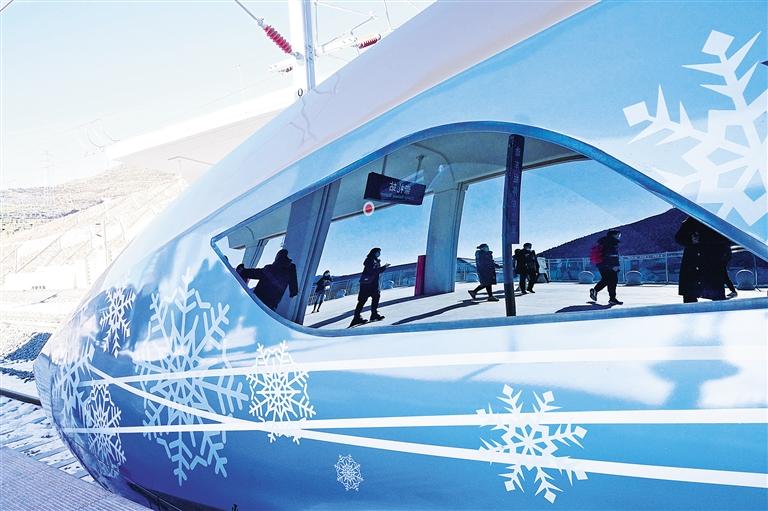 ▼1月6日,新型奥运版复兴号智能动车组停靠在京张高铁崇礼站。当日,崇礼铁路太子城至崇礼段正式开通运营,打通服务保障2022北京冬奥会最后一公里。赵 晶摄