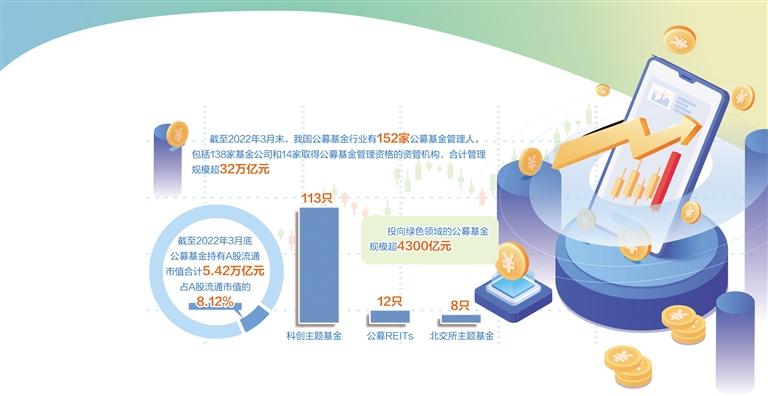 截至2022年3月末,我国公募基金行业有152家公募基金管理人,包括138家基金公司和14家取得公募基金管理资格的资管机构,合计管理规模超32万亿元。