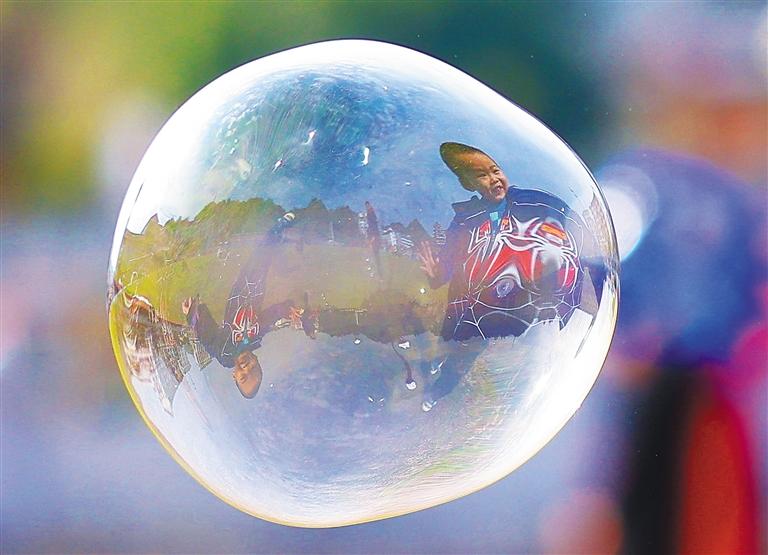 ▼2月5日,湖南省通道侗族自治县,小朋友尽享吹气泡带来的乐趣。粟勇主摄