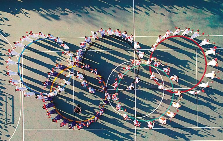 2月5日,河北省保定市西高社区组织开展冬季全民健身活动,为冬奥加油。田艳军摄