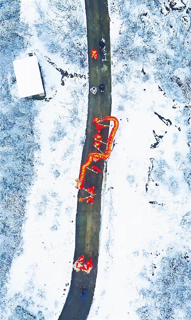 2月1日,贵州省开阳县云开街道石头村大岩组,龙灯队在田间舞龙灯,过大年。袁福洪摄