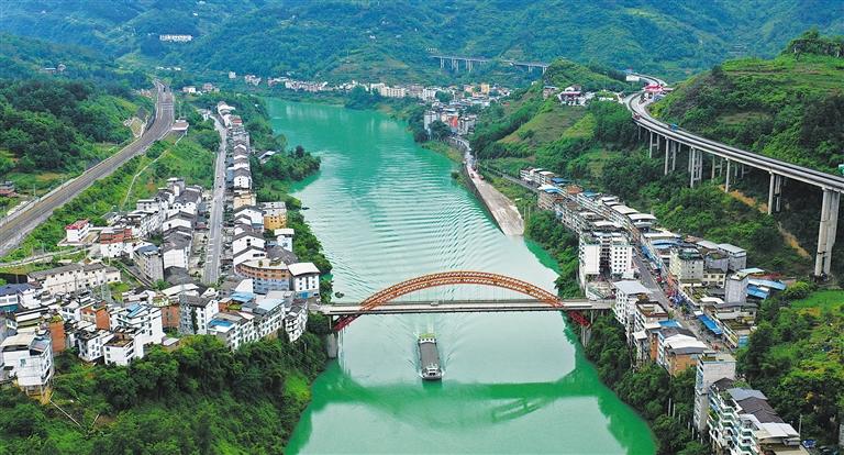 5月15日,重庆彭水苗族土家族自治县高谷镇,船只航行在碧绿的乌江上,构成初夏时节美丽的乡村画卷。近年来,当地深入贯彻“绿水青山就是金山银山”理念,不断加大乌江流域生态环境保护力度,有效促进当地生态产业发展。赵 勇摄(中经视觉)
