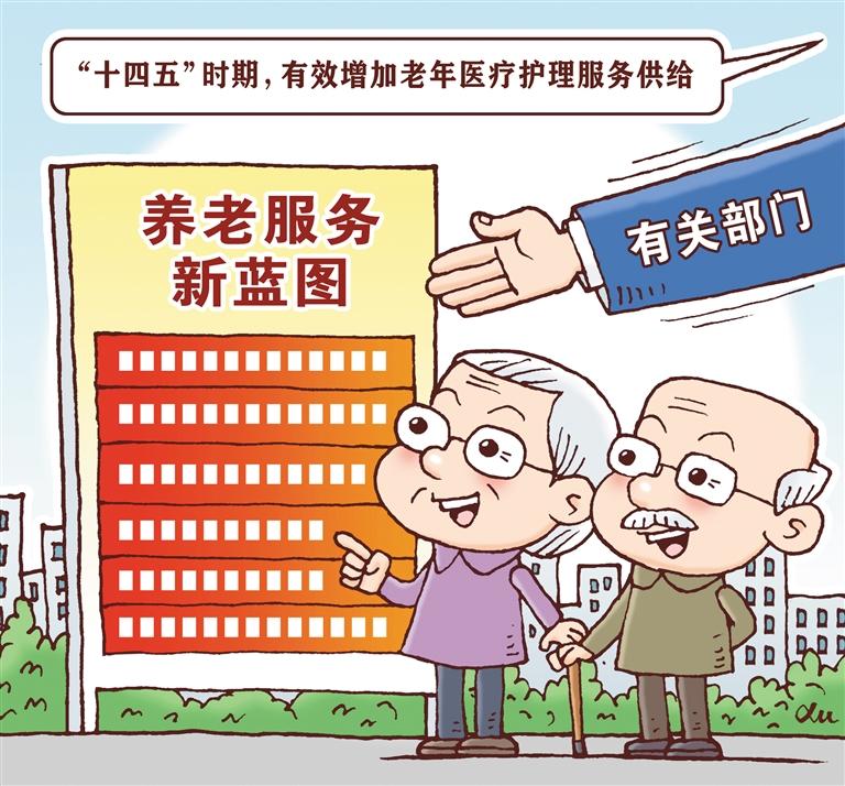 近日,国家卫健委印发《全国护理事业发展规划(2021—2025年)》称,“十四五”时期,我国将有效增加老年人、妇儿等领域护理服务供给。当前,我国人口基数大、人口众多的基本国情没有改变,老年人口比重继续上升。如何解决养老之忧、破解养老难题,是全社会积极应对人口老龄化要做好的必答题。对此,应优化城乡养老服务供给,支持社会力量提供日间照料、康复护理等服务,鼓励发展农村互助式养老服务,推动老龄事业和产业高质量发展,勾勒养老服务新蓝图。(时 锋)