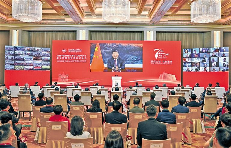 新华社北京5月18日电 5月18日,国家主席习近平在庆祝中国国际贸易促进委员会建会70周年大会暨全球贸易投资促进峰会上发表视频致辞。