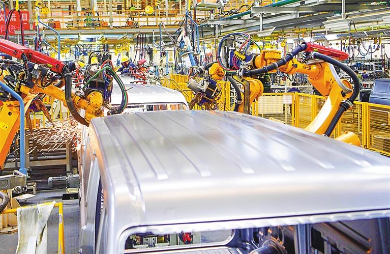 位于赣州经开区新能源汽车科技城的凯马汽车制造有限公司赣州分公司,机械手在焊接汽车车架。目前,赣州经开区已成为集“整车+零部件+研发+检测+汽车文化”全产业链发展的工业集聚区。刘 青摄