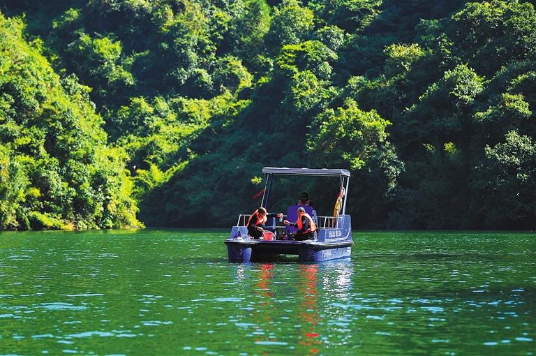 赣州市安远县生态环境局的工作人员在东江源取水化验。安远县坚持绿色发展,实施最严格的环境保护制度,纵深推进河(湖)长制,建设东江源头幸福河湖,截至今年已为粤港居民输送57年放心水。孙金玉摄