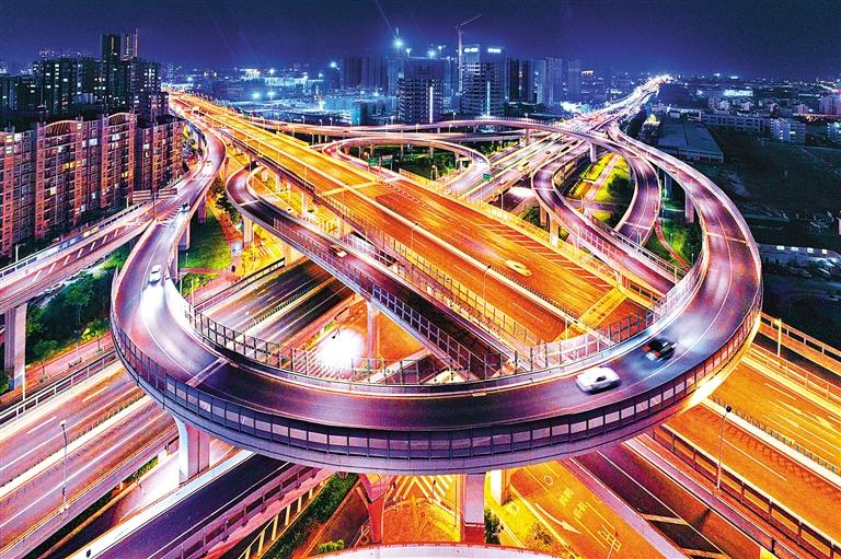 俯瞰赣州市迎宾高架快速路杨梅渡立交段。近年来,赣州市围绕建设省域副中心城市和区域性综合交通枢纽,加大交通基础设施建设投入。朱海鹏摄