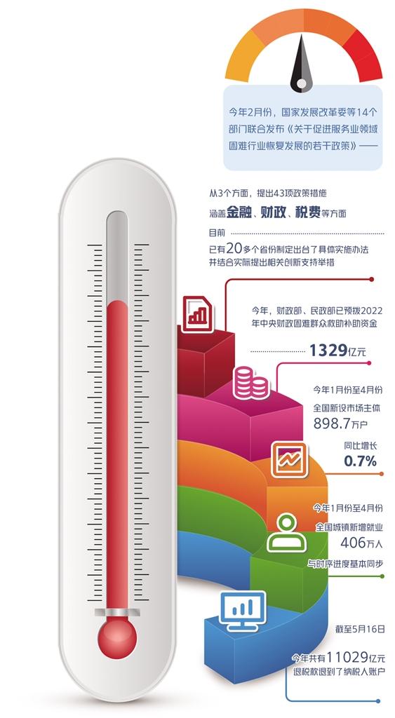 加大救助力度。财政部、民政部已预拨2022年中央财政困难群众救助补助资金1329亿元,支持各地加强困难群众基本生活保障。比如,青海省今年4月以来已排查各类困难群众21.3万人,发放救助补助资金5062万元;山东省今年新纳入低保2.45万人,新纳入特困救助供养0.78万人,实施临时救助2.42万人次;山西省自3月上旬以来,全省累计实施临时救助4216人次,支出金额568.7万元……
