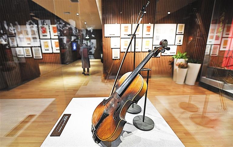 ▶上海市杨浦区国歌展示馆内的小提琴展品。国歌展示馆是全国首座以纪念中华人民共和国国歌为主题的展示馆,旨在充分展现国歌魅力,激发公众的爱党爱国情怀。