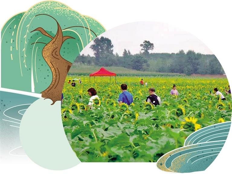 在杏林村东侧,绿油油的地里隐藏着一片神秘花海——150亩的向日葵正在等待两个月后的绽放。“80后”市民李薇说,自己很早就发现了这个宝藏打卡地,去年夏天带孩子来这里写生,感觉特别棒。“从我家开车到这儿也就40多分钟,虽然离市里不远,但身处蓝天、白云、向日葵的田园风景画之中,感觉能让自己彻底放松下来。”