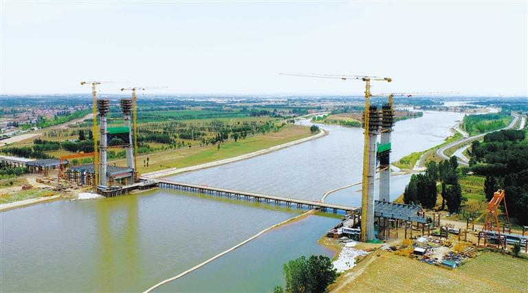 5月22日,宁夏中卫下河沿黄河公路大桥建设现场。该大桥是宁夏规划建设的第20座黄河公路大桥,建成后将改善区域交通出行条件,对当地构建旅游中心城市以及促进区域经济社会发展具有重大意义。