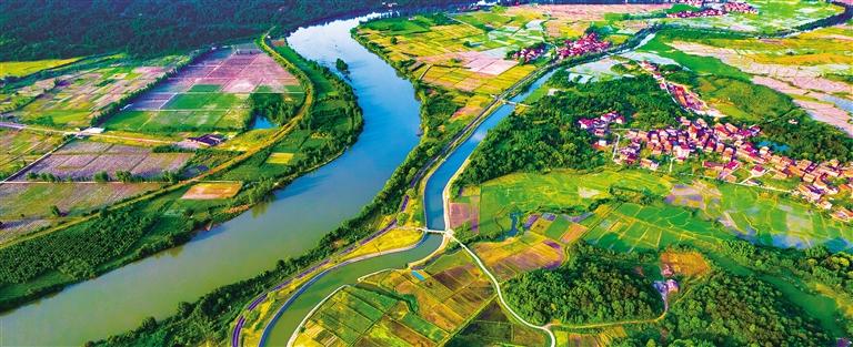 5月23日,江西省新余市仙女湖区河下镇水网布局下的乡村灌溉区早稻田,与农村公路、村庄、河流辉映成景。近年来,该市围绕节水增效等用水思路,及时调整灌区农业产业结构,打造高质量发展的乡村生态画卷。赵春亮摄(中经视觉)