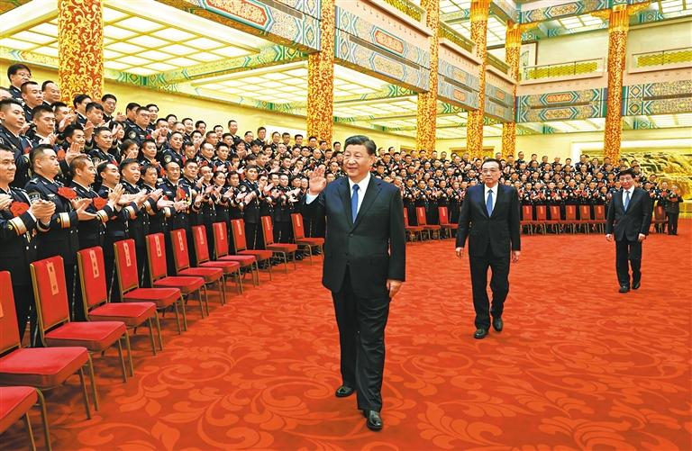 郭声琨参加会见并在表彰大会上讲话。他指出,全国公安机关要以习近平新时代中国特色社会主义思想为指导,深入贯彻习近平法治思想,全面贯彻党的十九大和十九届历次全会精神,深刻领悟“两个确立”的决定性意义,增强“四个意识”、坚定“四个自信”、做到“两个维护”,忠实践行对党忠诚、服务人民、执法公正、纪律严明的总要求,学习弘扬英模精神,全力做好防风险、保安全、护稳定各项工作,以实际行动迎接党的二十大胜利召开。