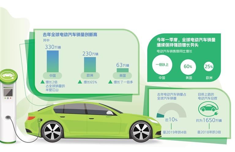 这其中,中国电动汽车发展最为亮眼,去年销量增长了2倍,达到330万辆,占全球销量的半壁江山。中国在世界电动汽车市场的主导地位更加稳固。