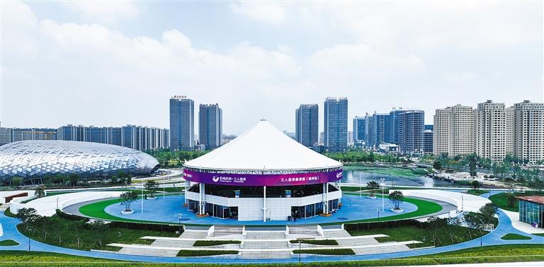 5月26日,俯瞰浙江省湖州市德清地理信息小镇三人篮球场。当日,该篮球场正式启用,迎来三人篮球邀请赛,这是该场馆的首次赛事,也是对场馆和赛事组织相关服务工作的全方位检阅。谢尚国摄(中经视觉)