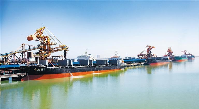5月27日,河北省沧州市黄骅港码头,多艘船舶在装运电煤。为保障迎峰度夏期间电煤稳定供应,黄骅港挖掘产能,运用科技手段提升运输效率,目前日均出港60万吨电煤,满足了南方各大火力发电企业的需求。