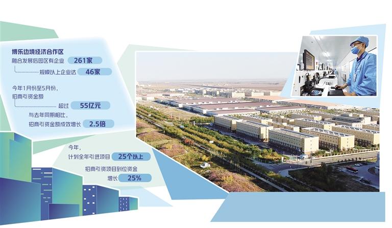 数据显示,今年1月份至5月份,博乐边合区招商引资金额超过55亿元。与去年同期相比,招商引资金额成效增长2.5倍。