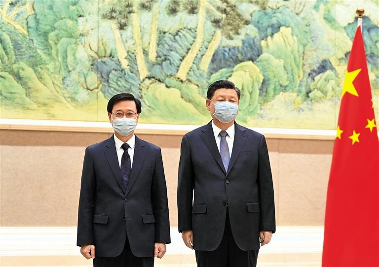 习近平强调,今年适逢香港回归祖国25周年。25年来,尽管经历了许多风雨挑战,但“一国两制”在香港的实践取得了举世公认的成功。中央全面准确贯彻“一国两制”方针的决心从没有动摇,更不会改变。在中央政府、香港特别行政区政府和社会各界的共同努力下,香港已实现由乱到治的重大转折,正处在由治及兴的关键时期。我相信,新一届特别行政区政府施政一定会展现新气象,香港发展一定会谱写新篇章。