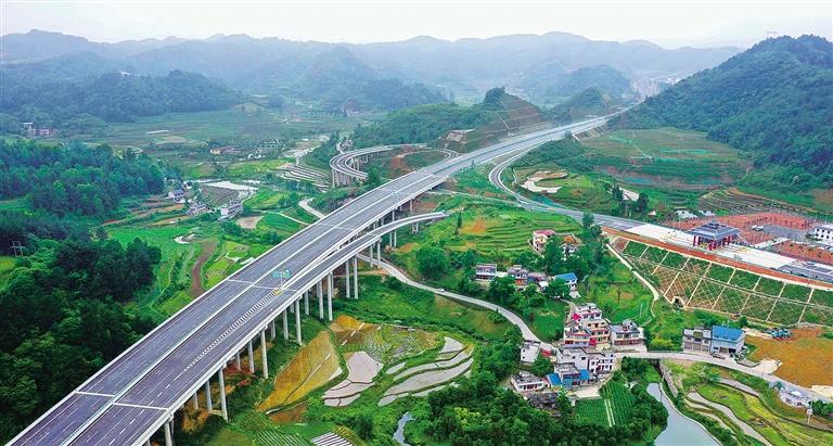 五月三十一日拍摄的贵(阳)黄(平)高速贵州福泉段。当日,贵阳至黄平高速公路全线通车,打通了贵阳东出长三角经济区的便捷高速通道。肖 伟摄(中经视觉)