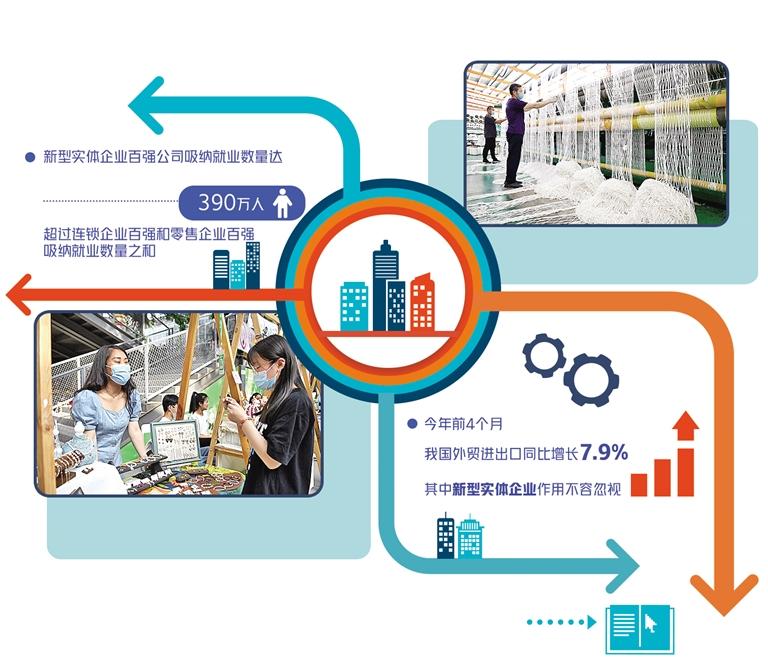 新型实体企业是稳定就业的生力军。基于庞大的实体规模、开放的服务体系,以及产业链供应链优势地位,新型实体企业在稳就业、保就业方面发挥了重要作用。有关数据显示,新型实体企业百强公司吸纳就业数量达到390万人,超过连锁企业百强和零售企业百强吸纳就业数量之和。
