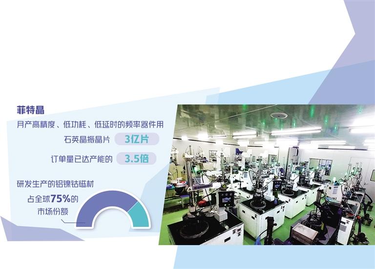 凭借过硬技术,菲特晶赢得大量订单。目前,菲特晶月产高精度、低功耗、低延时的频率器件用石英晶振晶片3亿片,订单量已达产能的3.5倍,部分产线订单排到2023年。“我们计划到2024年实现年产60亿片高稳定、高精度石英晶片。”董俊说。