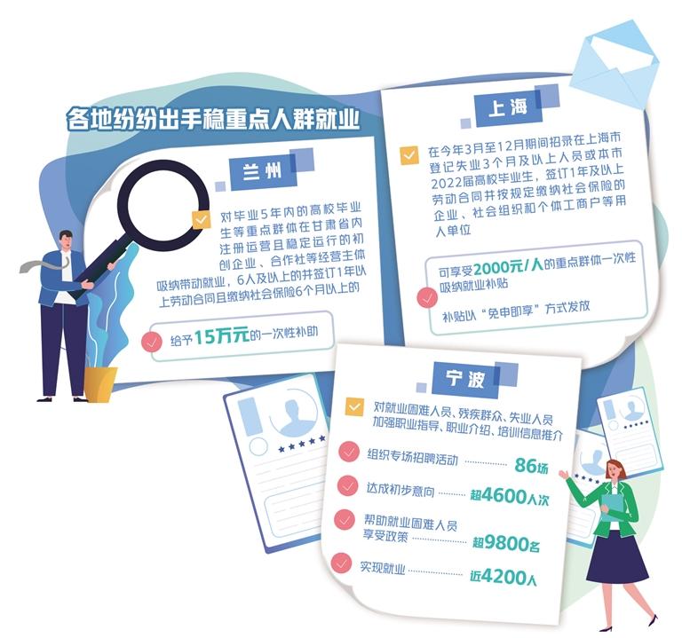 今年以来,面对就业压力,各地各部门出台了一系列政策稳就业、保民生。其中,如何确保重点人群实现就业,如何减少失业,如何帮助失业人员缓解生活困难,成为全社会关注的热点。