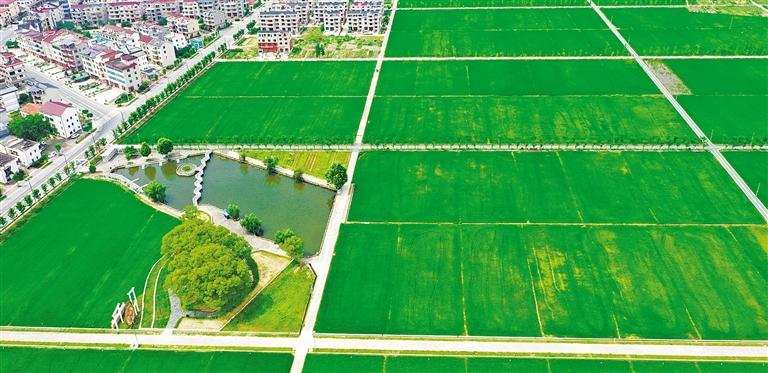 6月8日,浙江省东阳市城东街道寀卢村附近,田成方,树成行,路相连,水稻长势喜人。近年来,东阳市积极推进“共享田园”建设,以建公园的方式建设田园,实现田园生态、资源、产业、平台的共建共享。