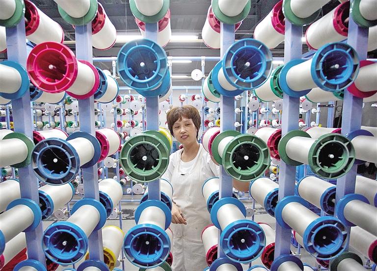 6月9日,位于浙江省湖州市南浔区双林镇的湖州东博丝织股份有限公司内,工人们正加紧赶制一批发往“一带一路”沿线国家的丝织品。近年来,当地丝绸企业积极融入“一带一路”建设,将先进理念“请进来”,带着产品和文化“走出去”,生产的丝绸产品深受沿线国家和地区消费者的喜爱。张 斌摄(中经视觉)