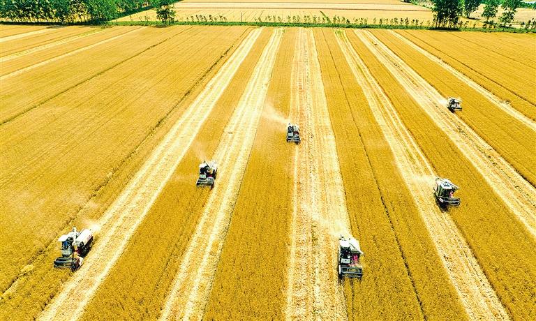 6月8日,江苏省连云港市东海县组织2022年小麦机收减损比赛,6台农机同时进行麦收作业。比赛中,农机技术人员对各位机手的收割时间、小麦割茬高度等数据进行适时监测,捡拾麦粒,测算损失率。据了解,通过组织比赛全面推广小麦机收减损技术,引导收割机驾驶员在生产实践中精操作、比技能,又好又快完成小麦机收任务,全力保障夏粮丰收、颗粒归仓。
