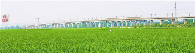 ⑥一列动车组列车穿行在四川省眉山市东坡区太和镇永丰村稻田。