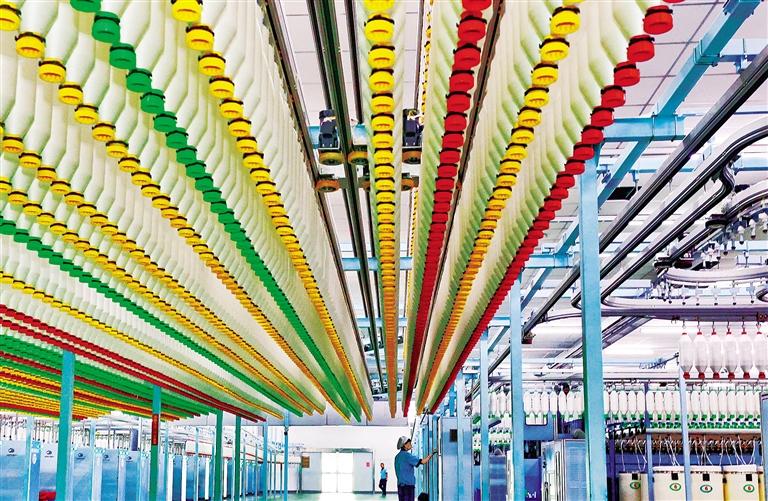 6月14日,江苏南通大生集团数字化纺纱车间一派繁忙。南通加快工业数字化改造,该车间拥有纺织行业首条全流程国产设备示范生产线。许丛军摄(中经视觉)