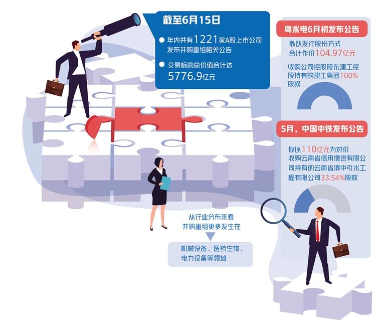 据同花顺iFinD数据统计,以最新公告日为准,截至6月15日,年内共有1221家A股上市公司发布并购重组相关公告,交易标的总价值合计达5776.9亿元。