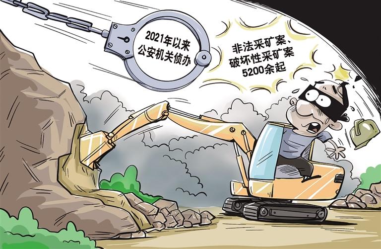 来自公安部的信息显示,2021年以来,全国公安机关共立案侦办非法采矿案、破坏性采矿案5200余起,抓获犯罪嫌疑人9600余人。非法采矿损害国家利益,会引发安全风险,更容易对生态环境造成恶劣影响。近年来,各地依法严打各类破坏矿产资源犯罪活动,先后侦破一批大案要案。相关部门须进一步密切协同,持续加大打击力度,全力防范盗采矿产资源引发的安全风险,推动形成严防、严管、严惩的打击整治合力,同时应加强普法宣传,做到以案警示,坚决维护国家矿产资源安全和生态环境安全。