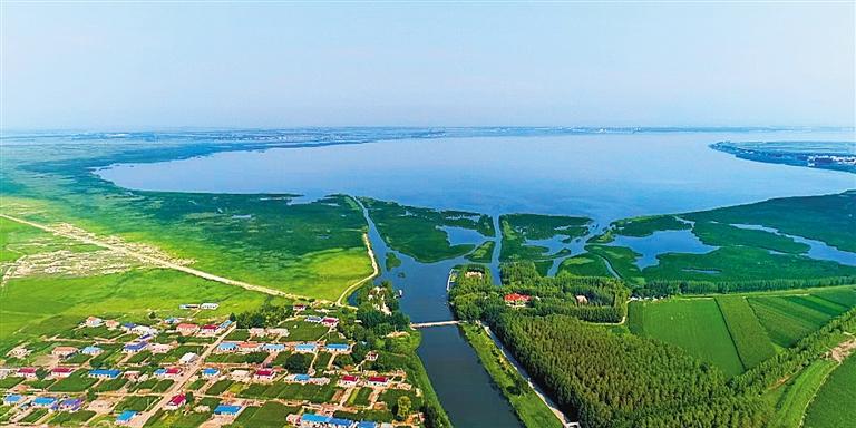 ◀位于松原市的查干湖碧波荡漾,生机盎然。多年来,松原市坚持保护与发展并重、生态与旅游并举,形成了独特的文化生态旅游融合发展新业态。