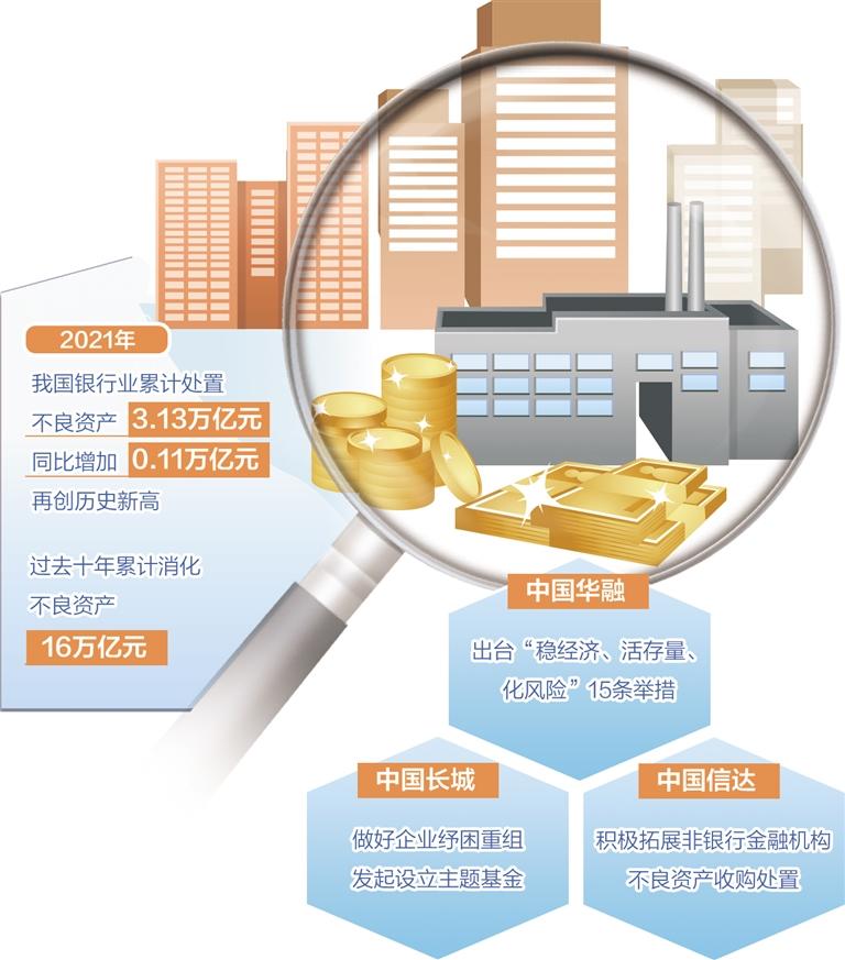 今年以来,各地新冠肺炎疫情多点散发、宏观经济面临三重压力,众多企业尤其是小微企业、个体工商户生产经营面临困难,银行不良贷款反弹压力也持续存在,金融风险防控仍面临严峻形势。今年年初,银保监会有关部门负责人在披露2021年银行业处置不良资产的情况时提到,银行业不良贷款呈现出稳中有降态势,2021年我国银行业累计处置不良资产3.13万亿元,同比增加0.11万亿元,再创历史新高。
