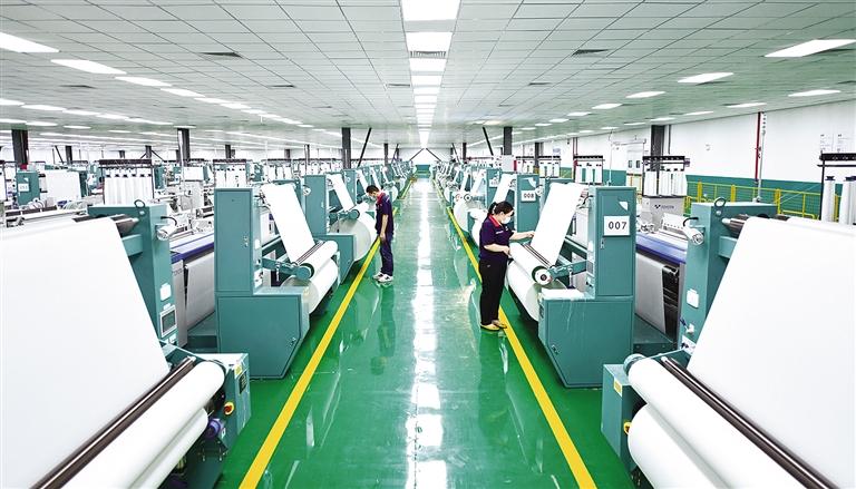 7月3日,江西省上犹县的江西星科电子基材有限公司,员工在数字自动化车间加工电子玻纤布。近年来,上犹县做大做强玻纤复材产业,集群企业增至150多家,与高等院校合作建立科研平台10个,助企业走出“数字自动化、科技创新型”产业升级路。朱海鹏摄(中经视觉)