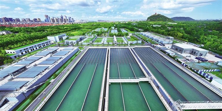7月2日航拍的江苏省南通市狼山水厂一角。狼山水厂2021年全年制水量1.5亿立方米,创年供水量的最高值。目前,南通市区及区域供水实现深度处理全覆盖,全面实现从供“合格水”向供“优质水”的转变。