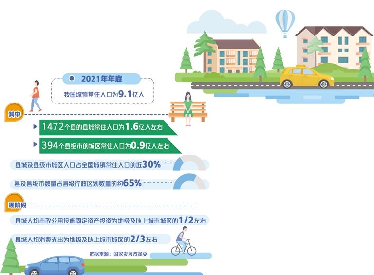 一是有利于把我国城镇化速度稳定在适宜水平。改革开放以来,我国城镇化水平得到快速提升。2021年末,我国常住人口城镇化率达到64.72%。从其他国家城镇化发展情况看,城镇化率达到60%后,不同国家的城镇化进程会出现分化。有的国家城镇化明显降速,到65%左右就不再提高;有的国家表现为缓慢降速,到75%左右进入稳定状态;有的国家城镇化速度一直保持稳定增长,到80%左右趋于稳定。当前,我国人口向大中城市集中的趋势已经放缓,推进以县城为重要载体的城镇化建设将有助于我国城镇化速度稳定在适宜水平,为实施扩大内需战略等一系列重大部署持续提供动力。