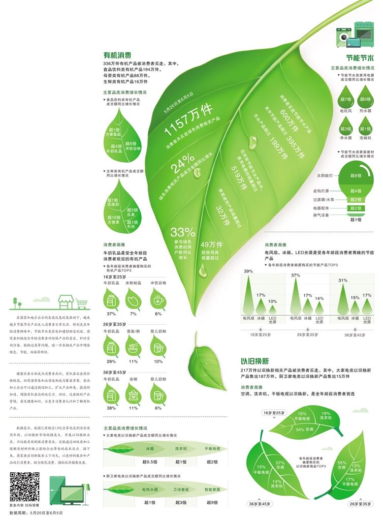 数据显示,以LED光源、太阳能等为代表的节能节水商品销售增长迅猛;以有机绿色为特征的食品和家居家装用品受到青睐;以旧换新更是成为了拉动家电消费的重要引擎。这些负责任的消费行为,不仅有利于环境保护、可持续发展,更能让消费者享受到美好、健康和高效的生活。